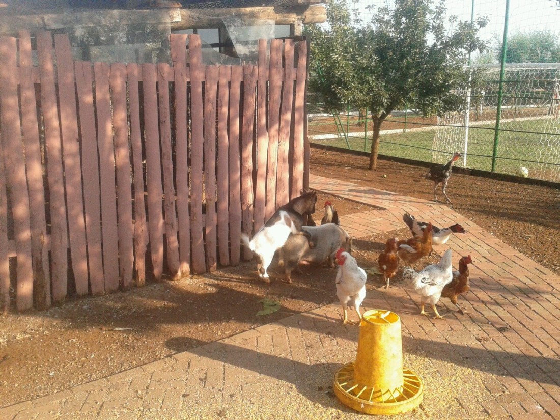 vo a vedere: la scena bellissima sono una capra e un maialino che giocano ad acchiappino, secondo il mi figliolo, e un capro che ogni tanto blocca un maialino e glielo butta dentro, per come la vedo io.